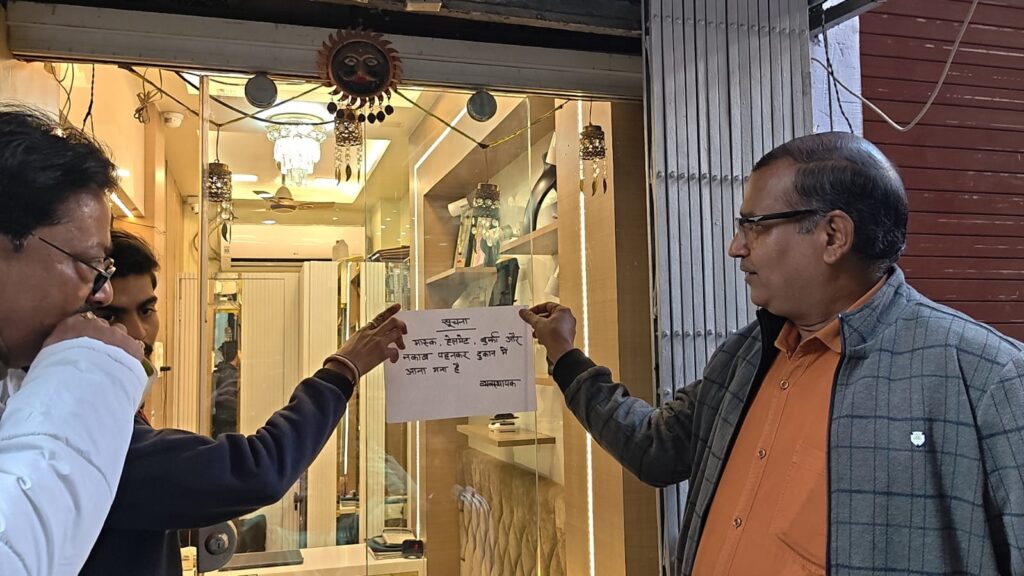 वाराणसी। देश में आभूषण कारोबारियों की दुकानों पर हो रही चोरी और लूट की घटनाओं की आ रही तस्वीर से कारोबारियों में भय का माहौल है। ऐसे में बनारस के स्वर्णकार समाज और एसोसिएशन ने अहम फैसला किया है। स्वर्णकार समाज ने अब बुर्का, नकाब समेत मास्क और हेलमेट पहनकर आने वाले ग्राहकों की नो एंट्री का पोस्टर लगा दिया है। आभूषण के दुकानों के बाहर लगे इन पोस्टर में साफ लिखा है कि ” बुर्का, नकाब, मास्क, हेलमेट पहनकर दुकान के अंदर आना मना है।” इस पोस्टर को वाराणसी के आभूषण कारोबारी अभियान चलाकर अपनी दुकानों पर लगा रहे है।
