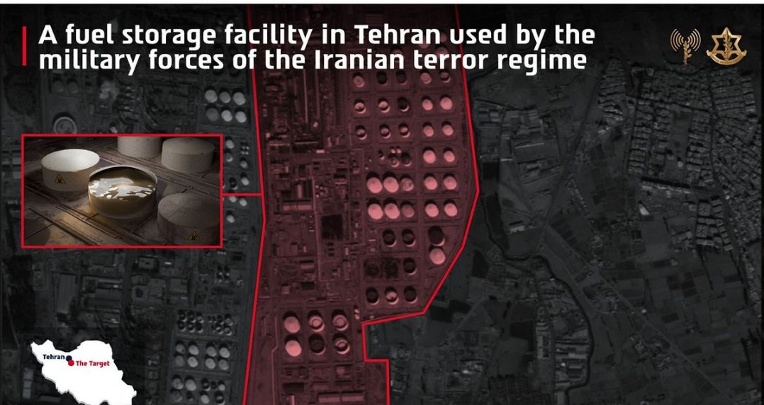 इज़राइल डिफेंस फोर्सेस (IDF) ने घोषणा की है कि इज़राइली एयर फोर्स (IAF) ने राजधानी तेहरान में कई ईरानी सैन्य ठिकानों पर लक्षित हमले किए हैं। सैन्य प्रवक्ता के अनुसार, “तेहरान में IRGC (इस्लामिक रिवोल्यूशनरी गार्ड्स कॉर्प्स) के कई ईंधन भंडारण संयंत्रों पर हमला किया गया है।”